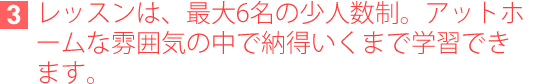 | 少人数制でアットホームな雰囲気のなかでおひとりおひとりの進捗具合をみながら丁寧に指導いたします。動画にてその風景をご覧ください。 | |
